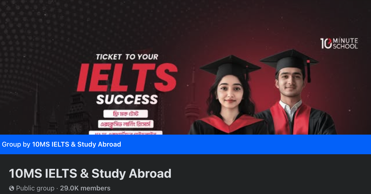 IELTS প্রস্তুতি সম্পর্কিত গুরুত্বপূর্ণ তথ্য, টিপস ও ট্রিকস পেতে আজই আমাদের ফেসবুক গ্রুপে যোগ দিন।