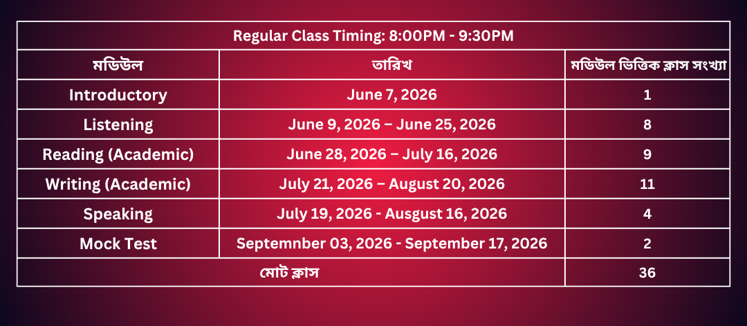 - পরিপূর্ণভাবে IELTS পরীক্ষার স্কোরিং সিস্টেম এবং সকল ধরনের Question-Answer করার Pattern বুঝে IELTS পরীক্ষায় কাঙ্ক্ষিত ব্যান্ড স্কোর অর্জন করতে সক্ষম হবেন।